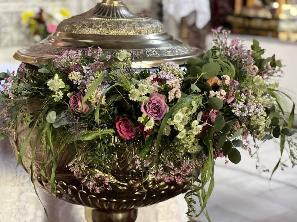 Μέσα σ' έναν ολάνθιστο κήπο ,με μυρωδιά από πασχαλιες και παιχνιδιάρικα λαγουδάκια η βάπτιση του μικρού Βασίλη